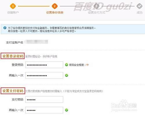 在设置身份信息中,需要对登录密码和支付密码,进入设定,