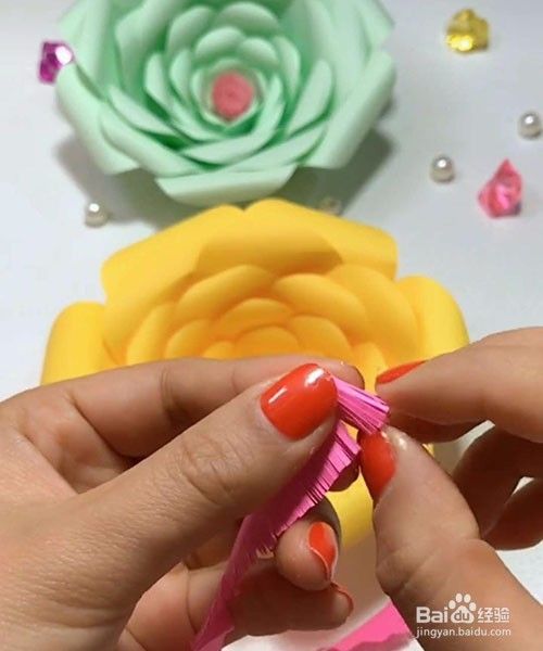 最后把花心粘在花朵的中心即可。
