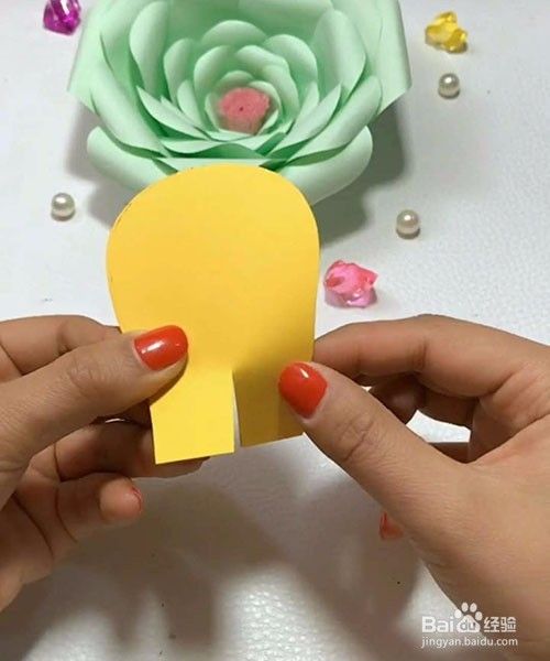 再如图在底部的中间剪开一小部分,然后用一样的做法,画出另外4个不同大小的花瓣,剪下来做好备用。