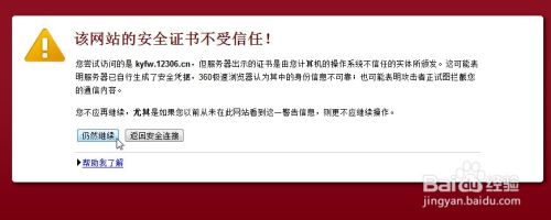 如图,打开铁路12306下载页面时,弹出图示该网站安全证书不受信任页面,这个影响不大,直接点击仍然继续