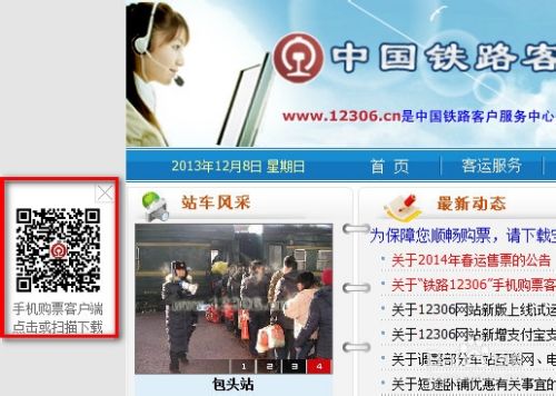 安卓手机用户怎么下载安装?可直接从www.12306.cn网站下载,打开12306主页后,如图,找到网页左边的二维码,扫描直接手机下载;点击二维码可以电脑下载,或者见后面的参考资料链接去下载页面下载