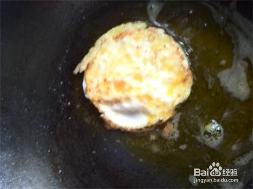 一会的功夫鸡蛋定型了,这时不要着急,再等等,等到鸡蛋清全部定型才可以。