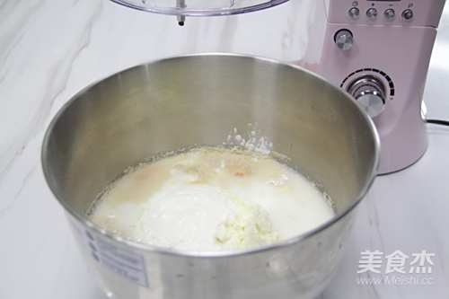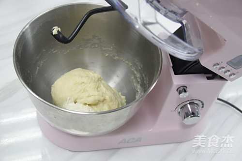 2除了黄油和盐,把主面材料全部放入厨师机里,揉成团