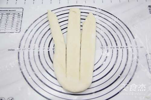 11依次做好8条辫子,均匀地摆放在烤盘上