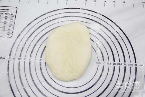 7取其中一个面团排气,擀成较长些的椭圆形