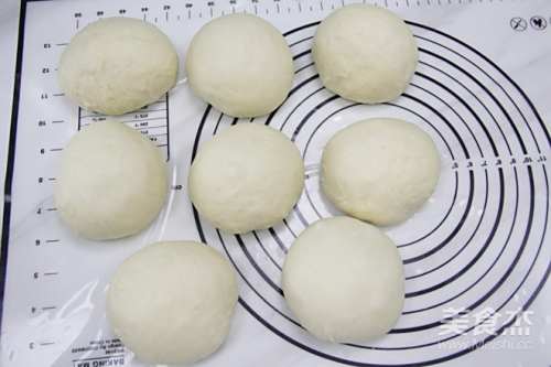6取出挤压排气,均分成八等份,盖保鲜膜静置10分钟