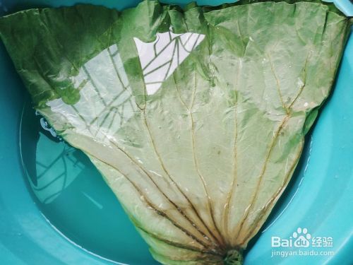 干荷叶整张放入盆中,用冷水浸泡半小时以上,泡软。