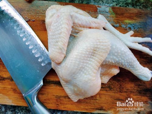 三黄鸡洗净,去除鸡屁股、指甲等。