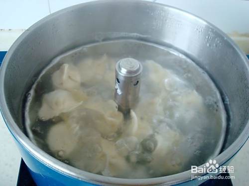 等水烧开以后,下饺子,加锅盖继续用猛火烧开,在转大火煮饺子,水开后加半碗清水进去