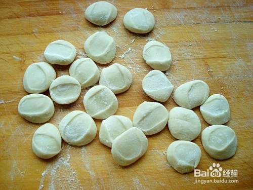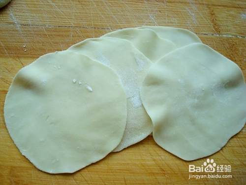 擀成中间厚,边边薄的小饺子皮