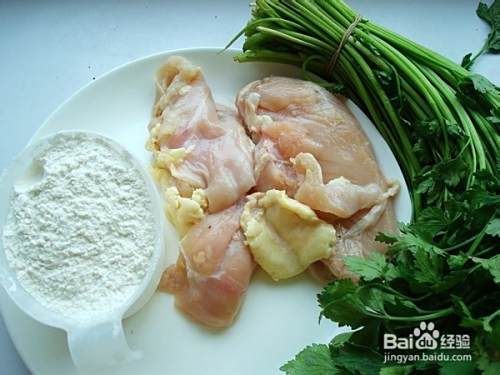 主料:毛芹菜500克、面粉600克、新鲜鸡胸500克