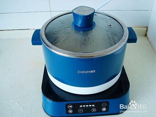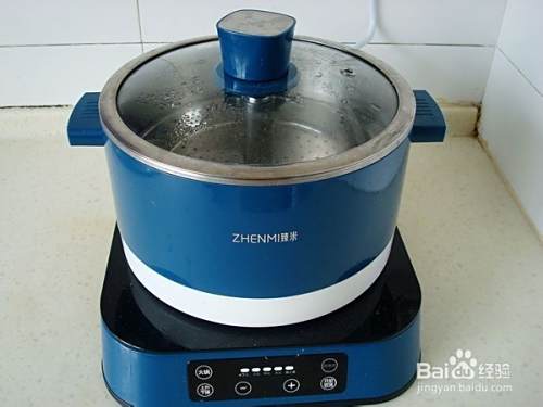 把臻米升降电火锅里加水,把蒸网加进电火锅里,加锅盖,把电火锅通电,启动“火锅”程序,程序里有大火、文火、小火、猛火多种功能,可以选择需要的火候,用猛火烧开水最好,这个臻米升降电火锅升温特别快,很节省时间