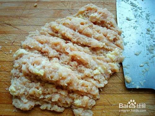 鸡胸肉切小块(可以新鲜鸡油一起剁,也可以猪肥肉一起剁),姜切片,一起加绞肉机打成肉泥,也可以直接用菜刀剁成肉泥。香葱洗净切末,倒出肉泥加水或者高汤,朝一个方向不停的搅拌上劲,加五香粉(可选)、生抽、蚝油拌均匀,静止一会入味