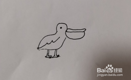 最后,画出鹈鹕的眼睛和脚掌就完成了。