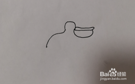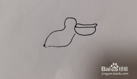 首先,在纸上画出一个不闭合的半圆形,鹈鹕的头部。