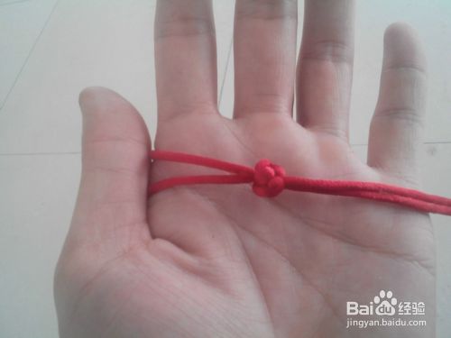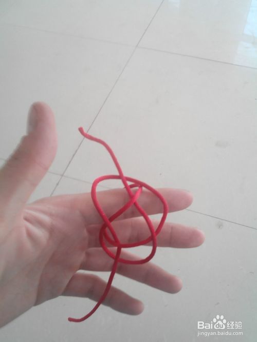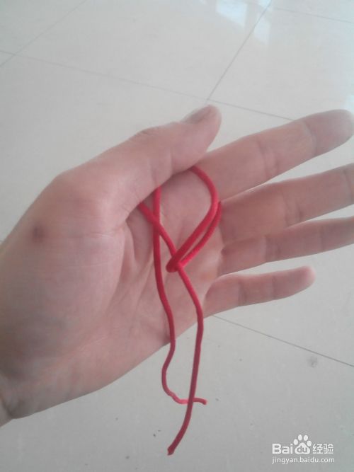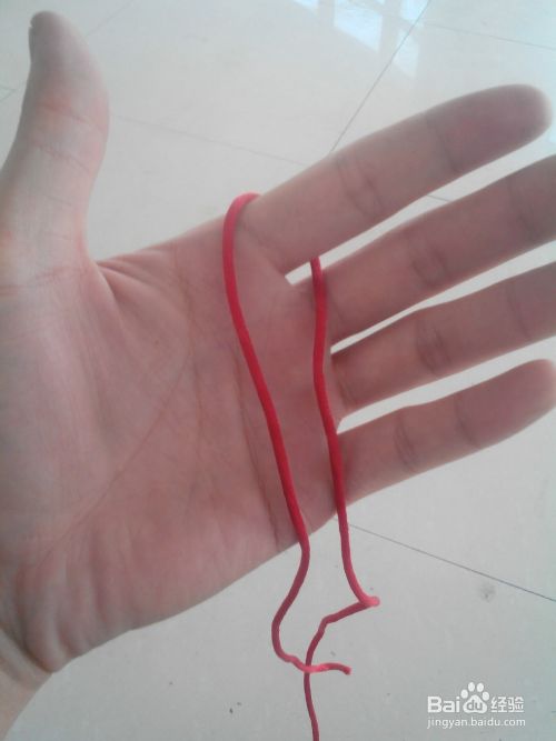 把红绳对折套在食指上,再把食指右边的线套在大拇指上,如图所示。