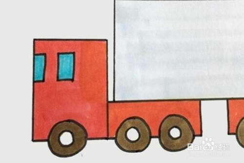将卡车的车窗涂成蓝色,车的轮子涂成棕色