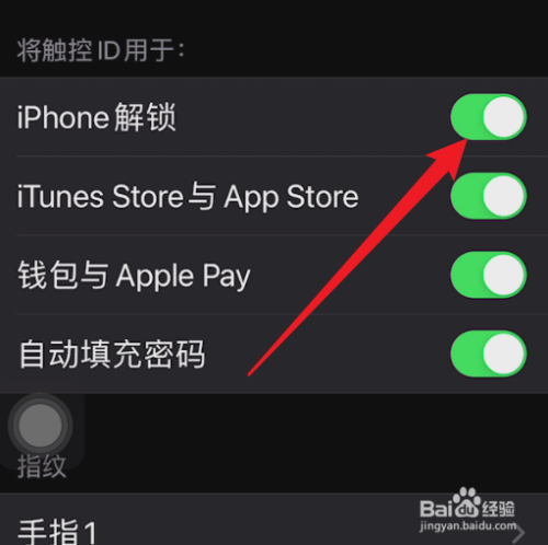 点击【iPhone解锁】的开启按钮打开指纹解锁。