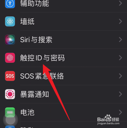 点击列表的【触控ID与密码】选项。