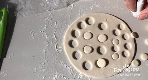 另外在取小部分,加入适量红曲米粉,做小老虎舌头用。剩下的白面团,用大圆和中号圆形磨具,压出,大圆做耳朵,小圆做胡子。