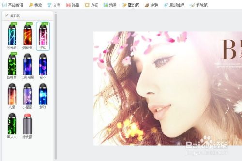 魔幻笔,更适合自拍照等休闲图片的装饰。不同的笔可以给图添加上不同的效果。有耐心的在商品图上同样可以尝试。