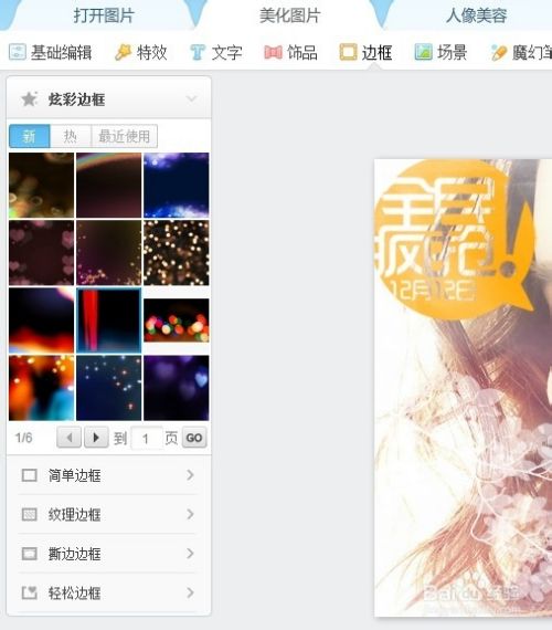 在边框菜单下同样的有大量的边框可以让你尝试添加到自己的图片,只要亲有耐心和时间多看和尝试,一定有适合自己的图片的。
