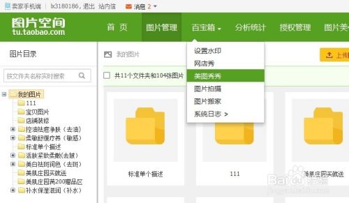 图片空间上方菜单光标移到百宝箱上,在出现的下拉菜单中选择美图秀秀