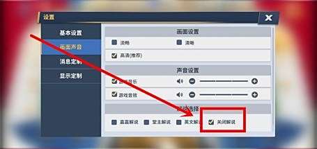 进入到画面声音这个页面中之后,在该页面的右下方位置我们找到关闭解说这个选项,点击选中即可成功关闭解说。