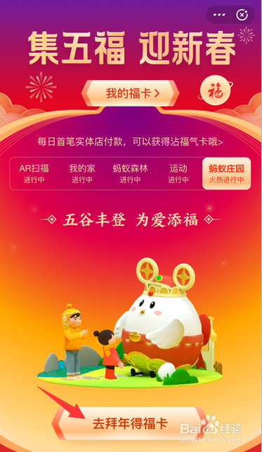 【支付宝集福】蚂蚁庄园小鸡拜年怎么领福卡?