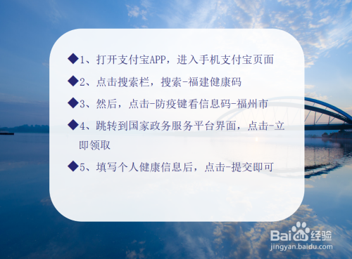 支付宝怎么申请福建健康码? 下面小编给大家介绍解决方式,希望此经验能帮助到你!