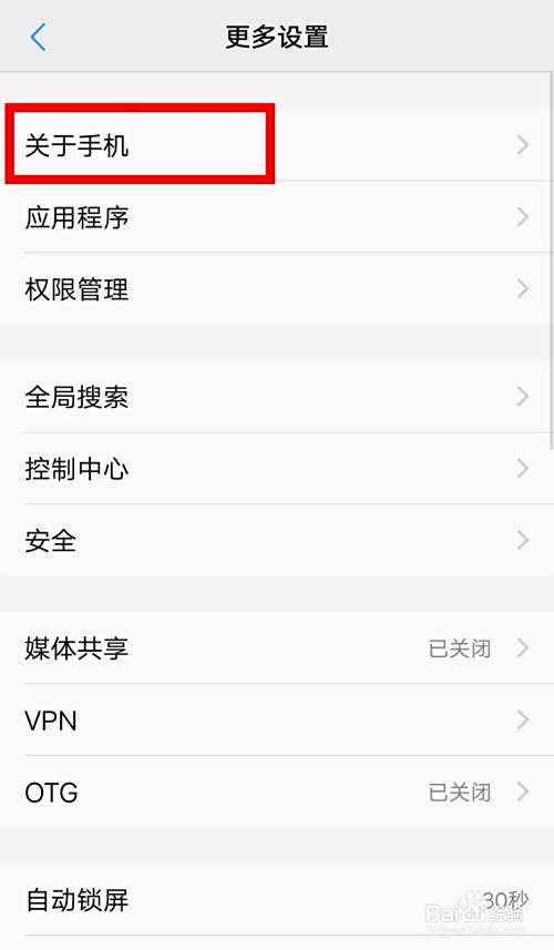 点击关于手机,如下图!