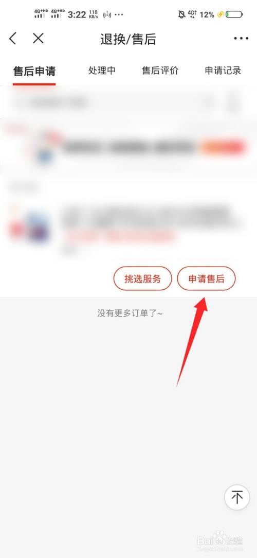进入售后申请页面,点击申请售后按钮。