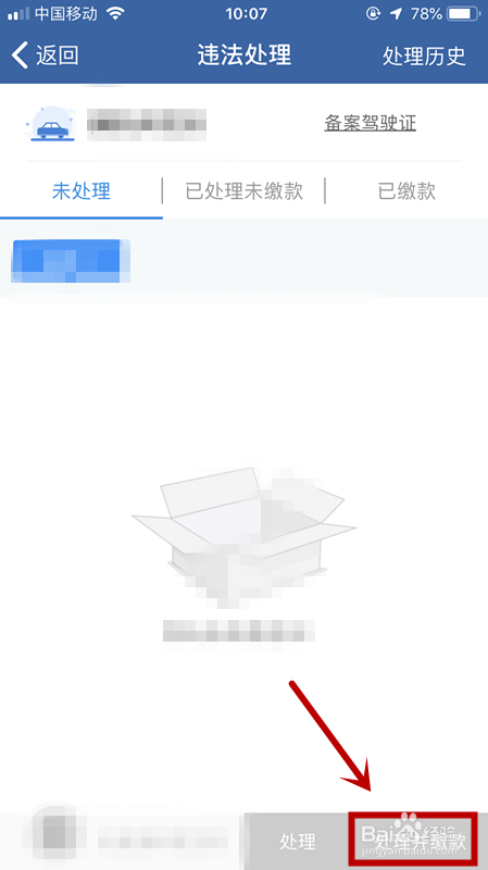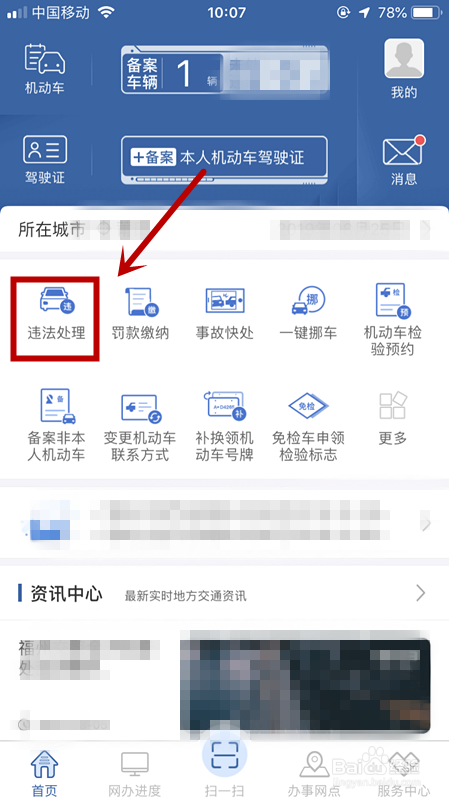 注册成功后,点击“违法处理”,查询车辆违法情况,在缴纳罚款页面有两种付款方式,选择微信支付即可。