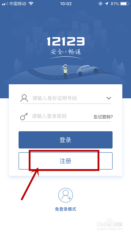 如若还未注册,请先点击“注册”,如若已经注册,直接输入身份证明号码和登录密码,如图