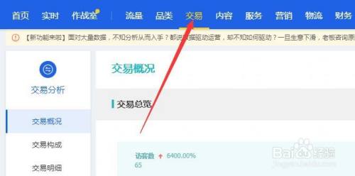 在页面上方找到交易,点击交易,然后就可以看到下单支付转化率。