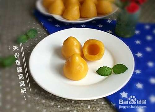 左手五指并拢,右手大拇指沾上干粉,把面团的顶端戳个小孔,边转动边整形,做出窝窝状