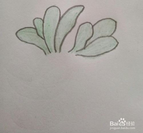 再画两片,形成一丛草,如下图所示: