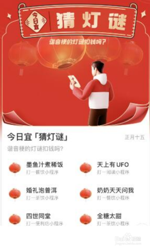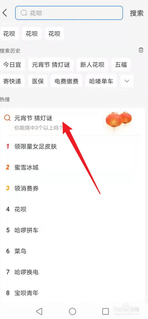 点击搜索栏,点击底部的【元宵节 猜灯谜】。