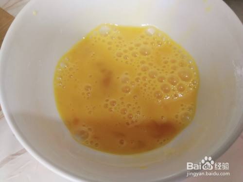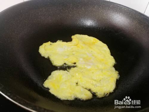 锅中倒入食用油,油热放入蛋液摊饼,出锅放入盘中。