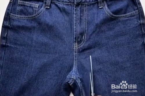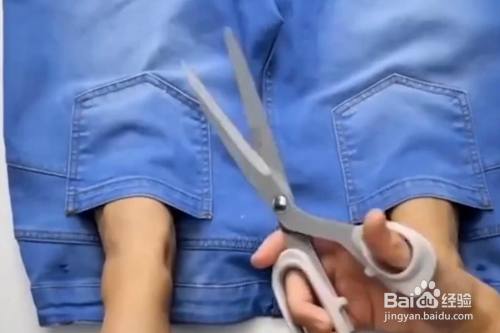 把裤腿剪短,裤门部分剪掉,简单调整一下牛仔裤。