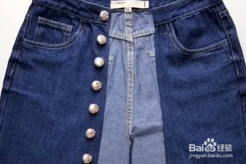 在一边装上一排扣子,割出圆孔,自制短裙就完成了。