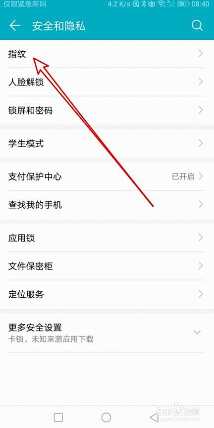 接下来在阐述的菜单中选择相应的指纹选项就可以了。