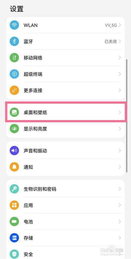 1、在手机设置菜单下点击桌面和壁纸。