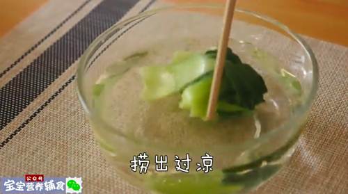 1油菜沸水焯过后捞出过冷水。