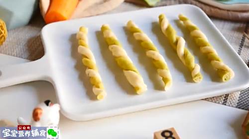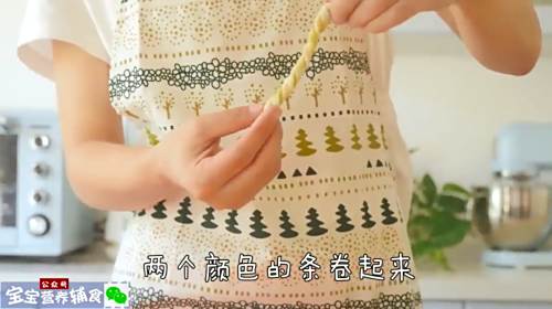 8将两种颜色的面条卷在一起。