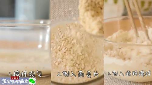 5另外再准备牛奶、酵母、燕麦片、面粉搅拌均匀揉成面团,包上保鲜膜。