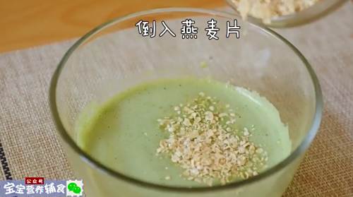 3油菜汁中加入酵母、燕麦片搅拌均匀。