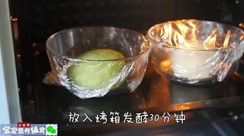 6将两个面团放入烤箱中发酵30分钟。