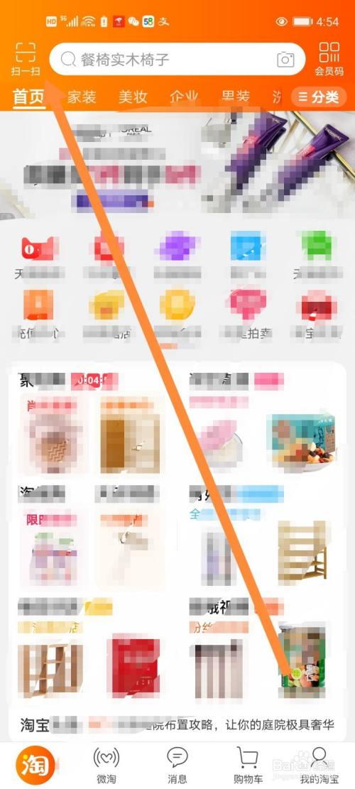打开手机淘宝,选择首页左上角的“扫一扫”,点击打开页面