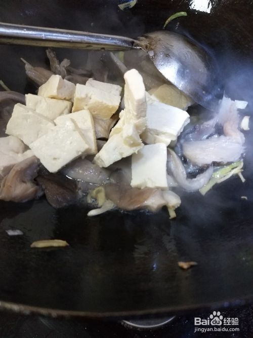 锅里放油,加热。待油温升至七成热时,放入葱姜蒜煸炒,待葱姜蒜煸炒出香味,放入鲜蘑翻炒,随即放入豆腐,加入生抽,老抽,盐,加水适量,炖制。最后收汁,放味精调味,出锅。